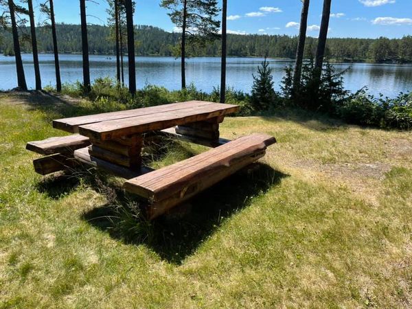 Utebord rett ved hytta og badebrygge ca 100 m unna.